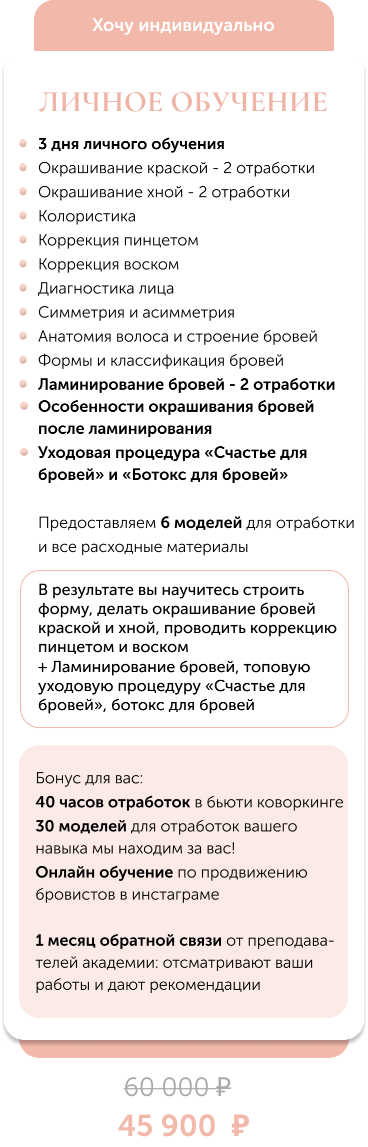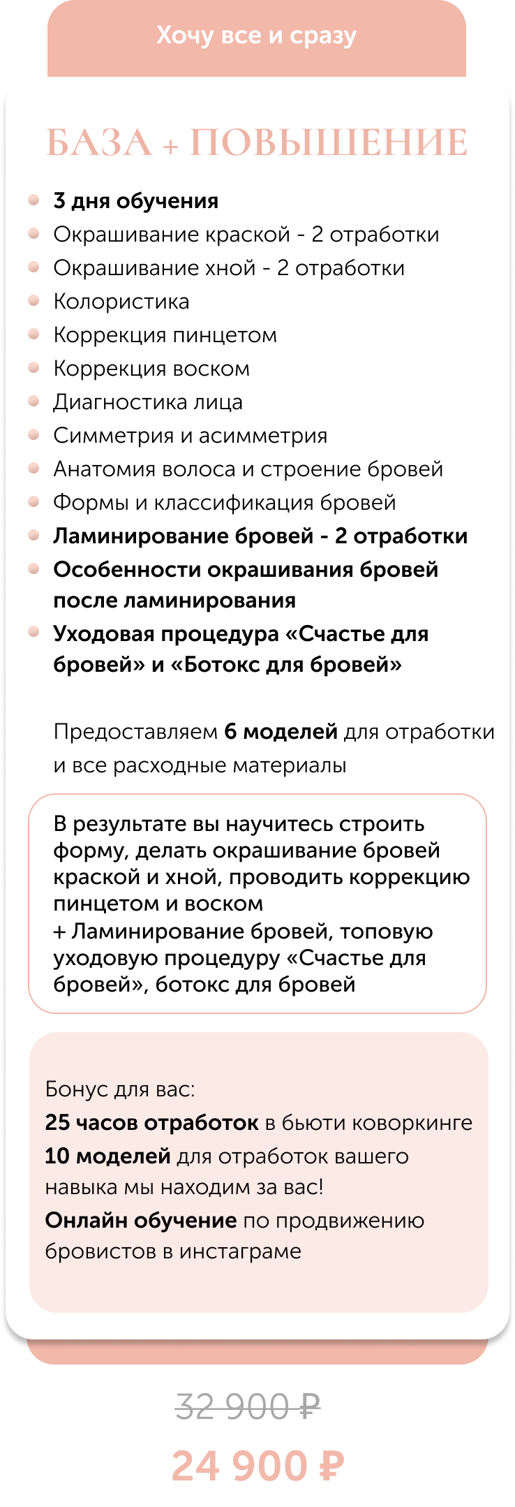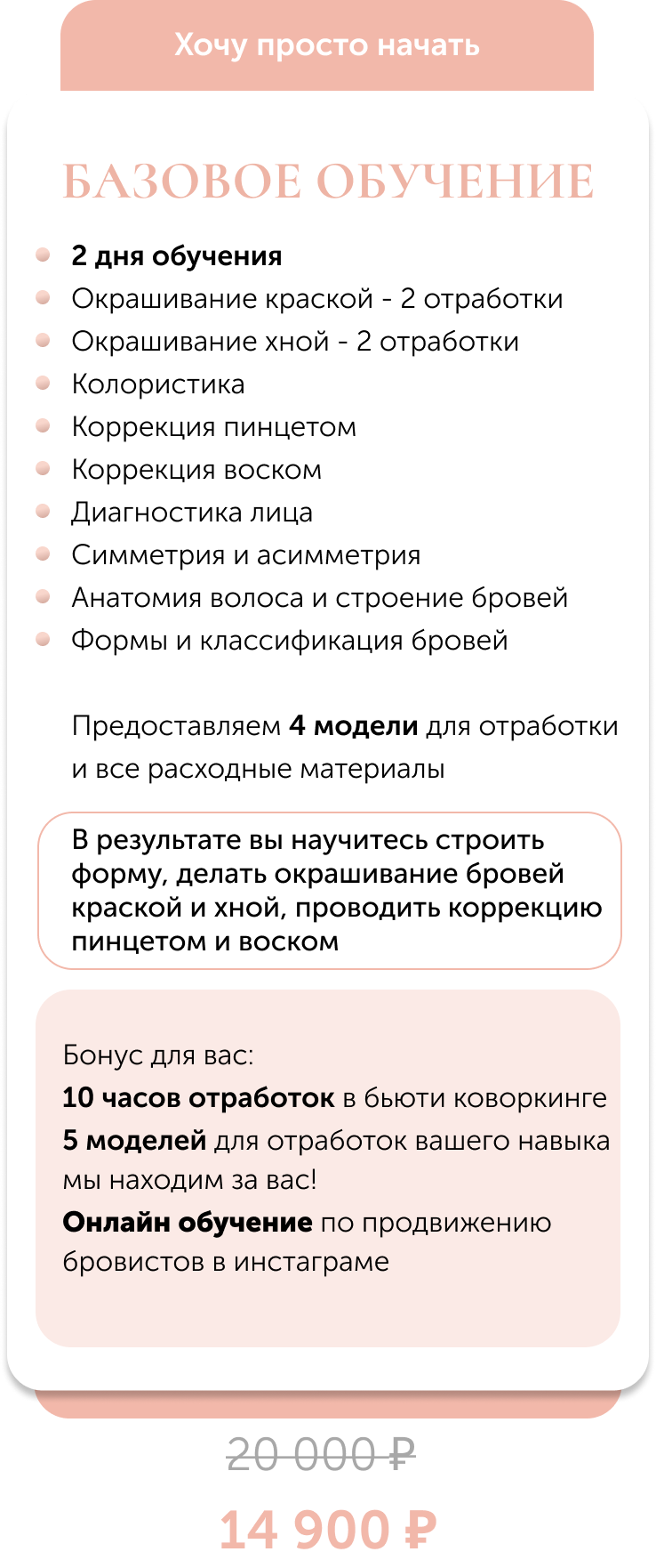 В результате первого дня: Вы получите все навыки по архитектуре бровей: построение формы, выбор цвета и коррекция бровей. Сможете с лёгкостью применить все навыки на втором дне практики